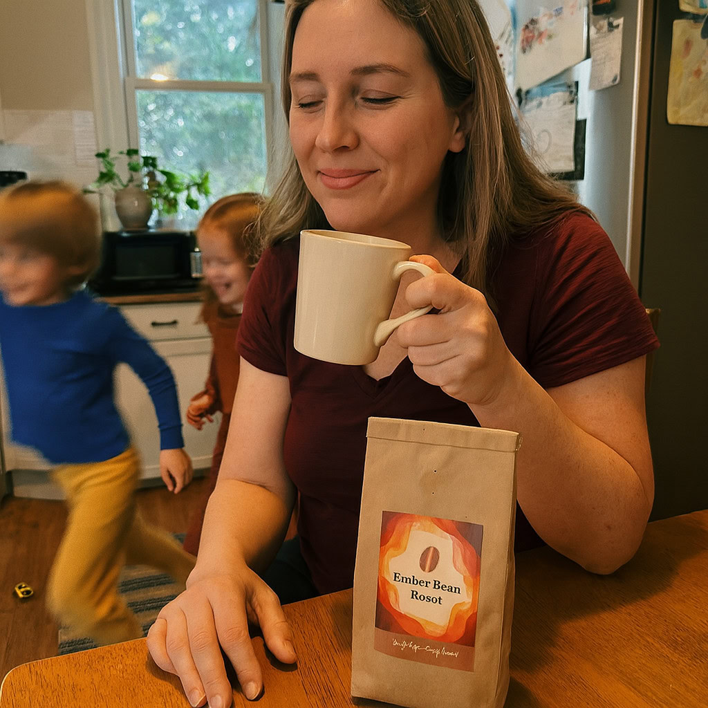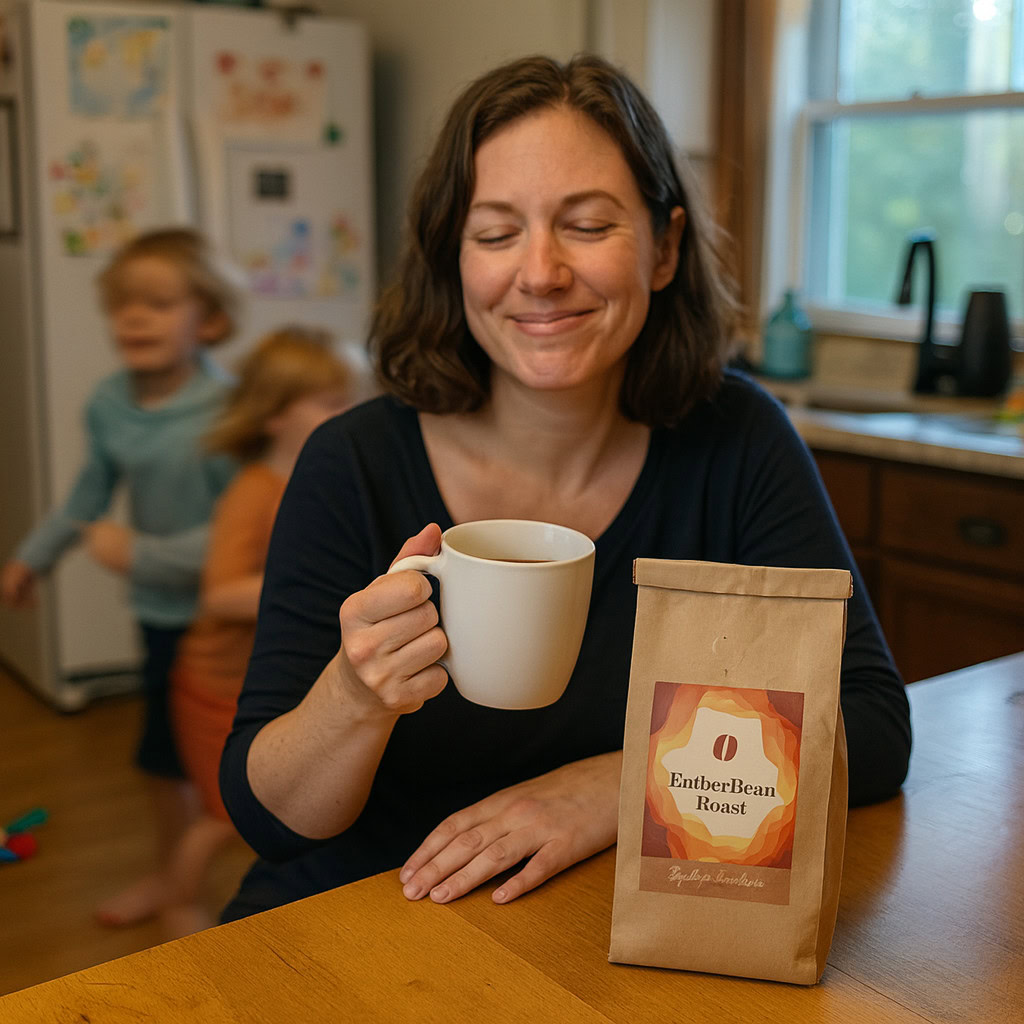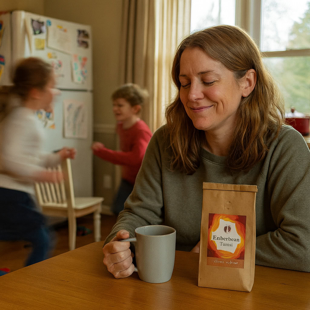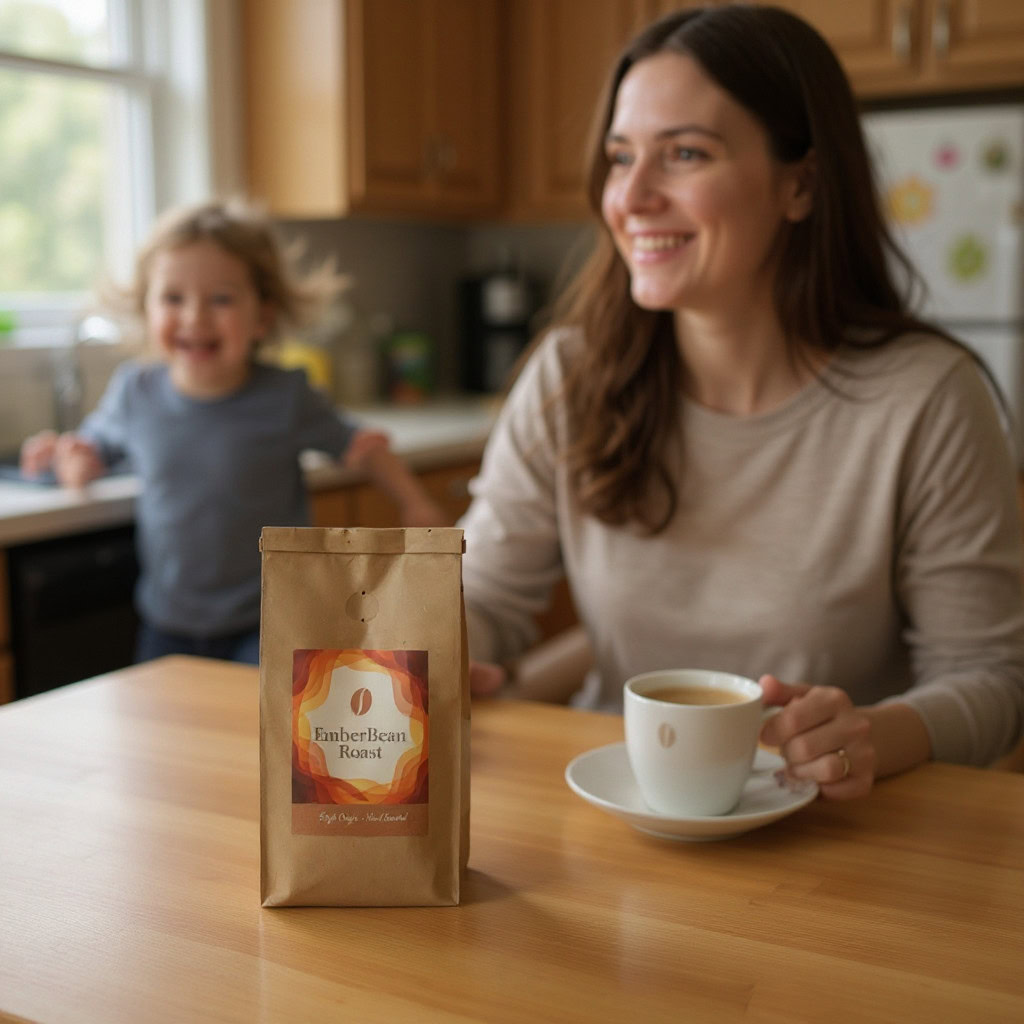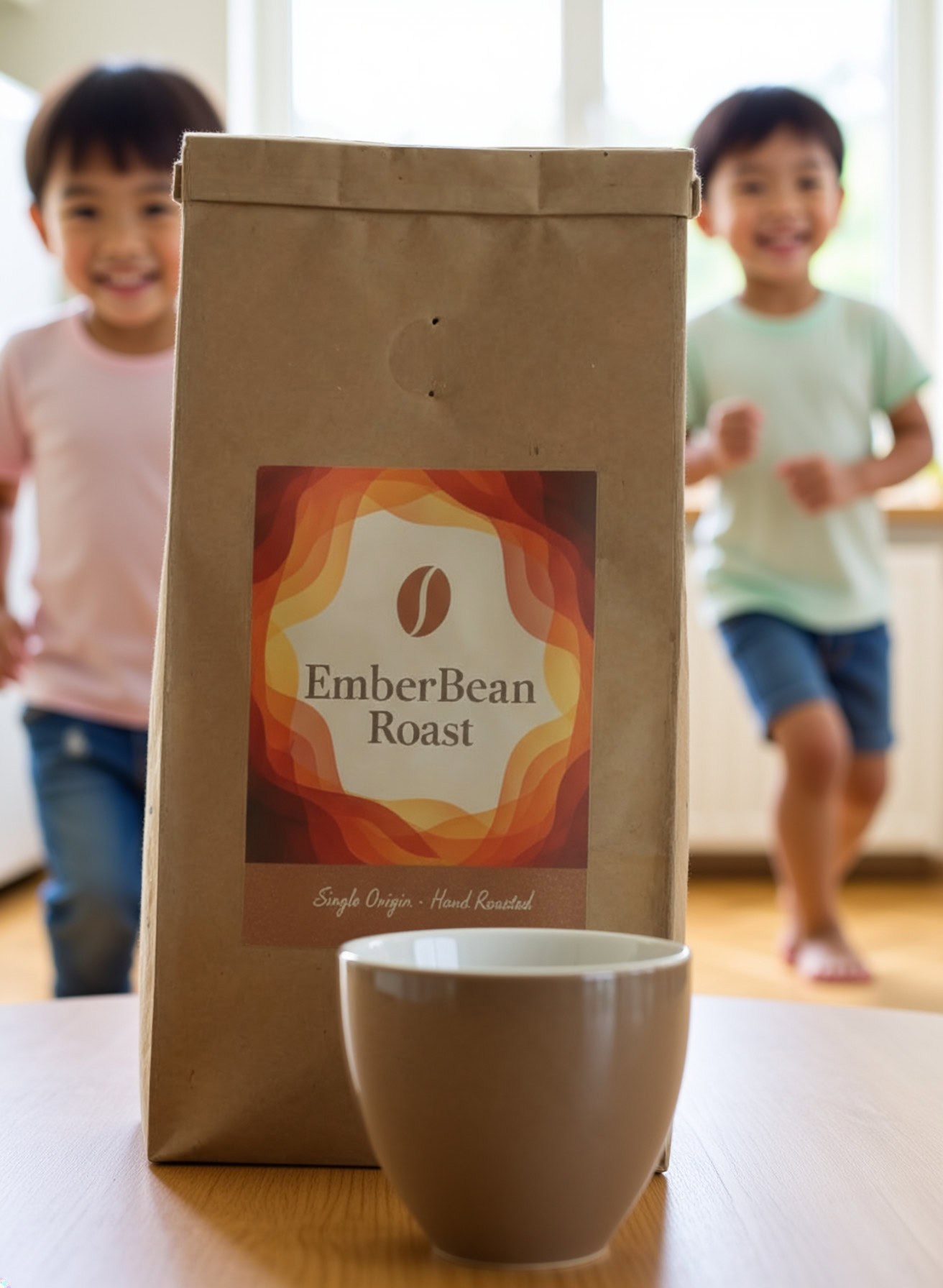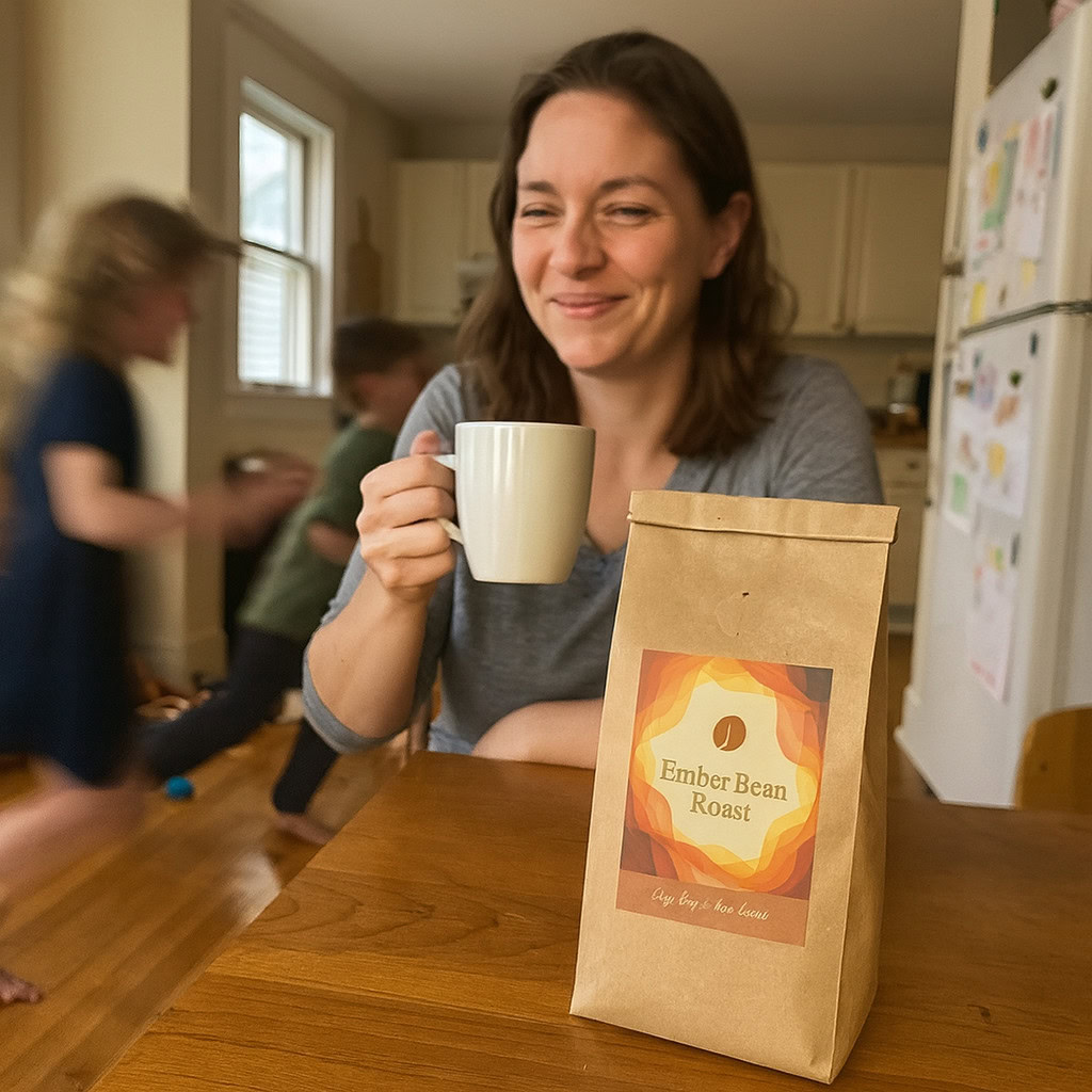 Stärken: Die Balance aus familiärem Chaos, Bewegungsunschärfe der Kinder und ruhiger, fokussierter Mutter gelingt sehr überzeugend; das Produkt bleibt klar erkennbar.
