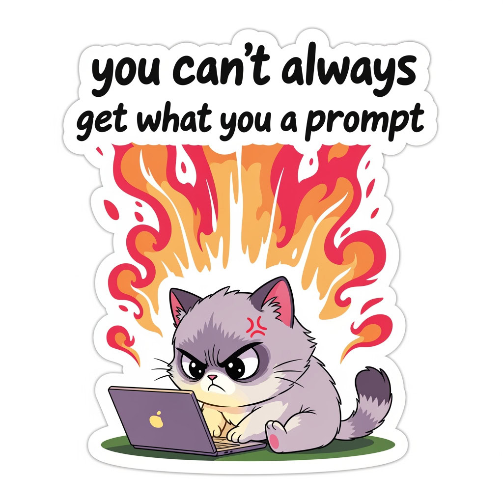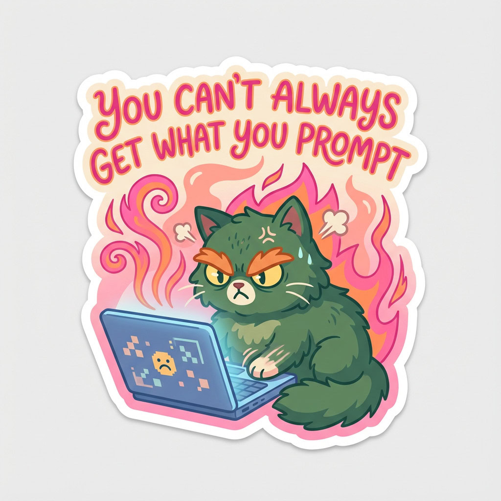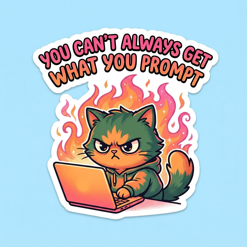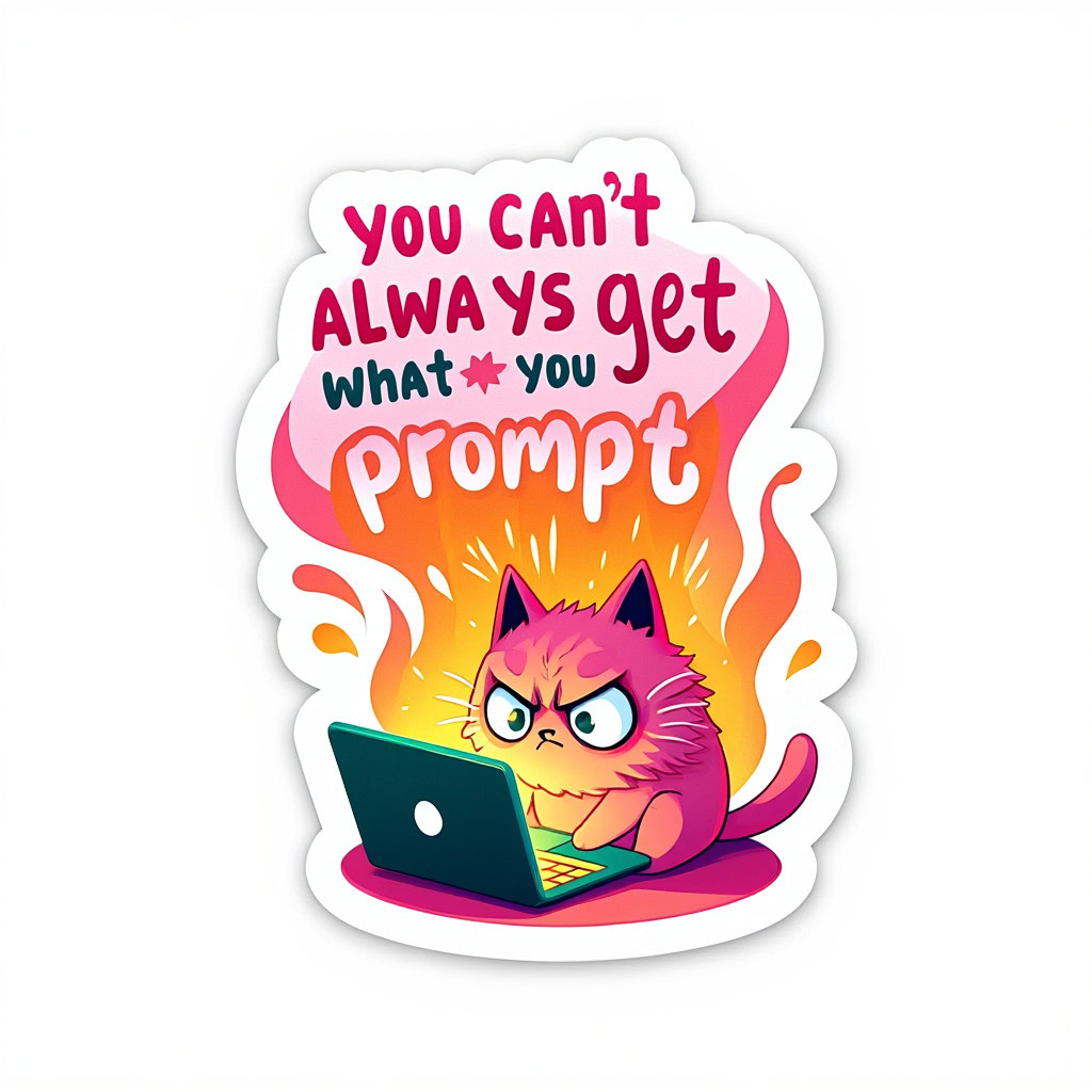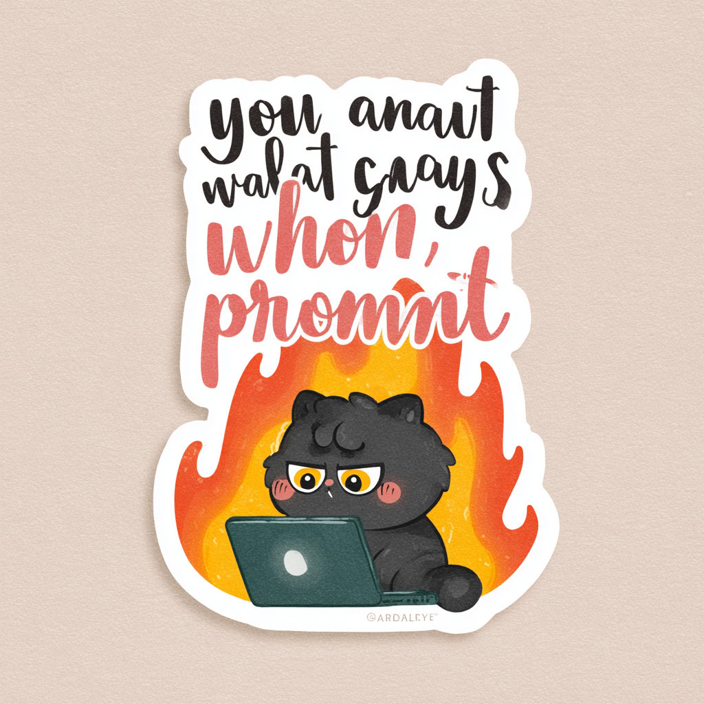 - Kreative Sticker-Illustration, bewertet nach Promptgenauigkeit, Textkorrektheit, kreativer Umsetzung, Farbigkeit und Klarheit der Sticker-Optik, zusätzlichen Bemerkungen und einer Gesamtbewertung.