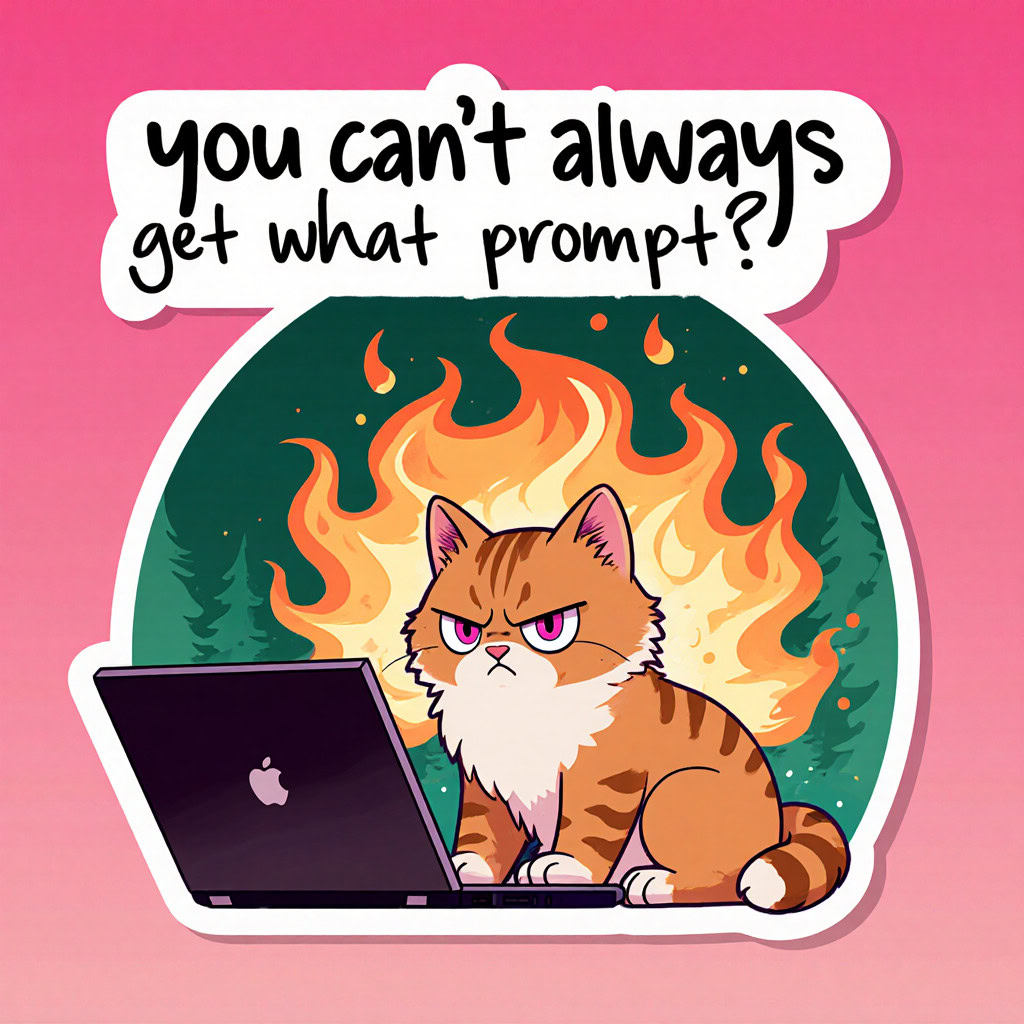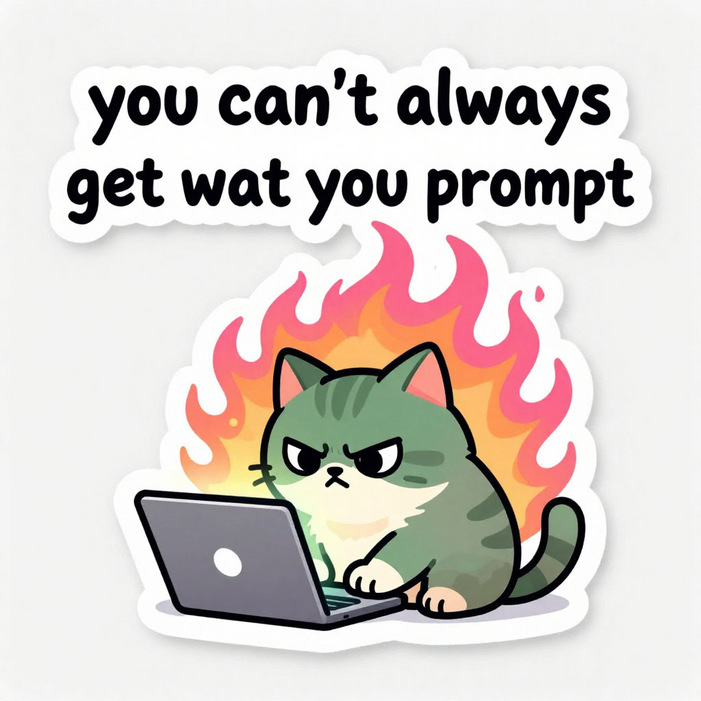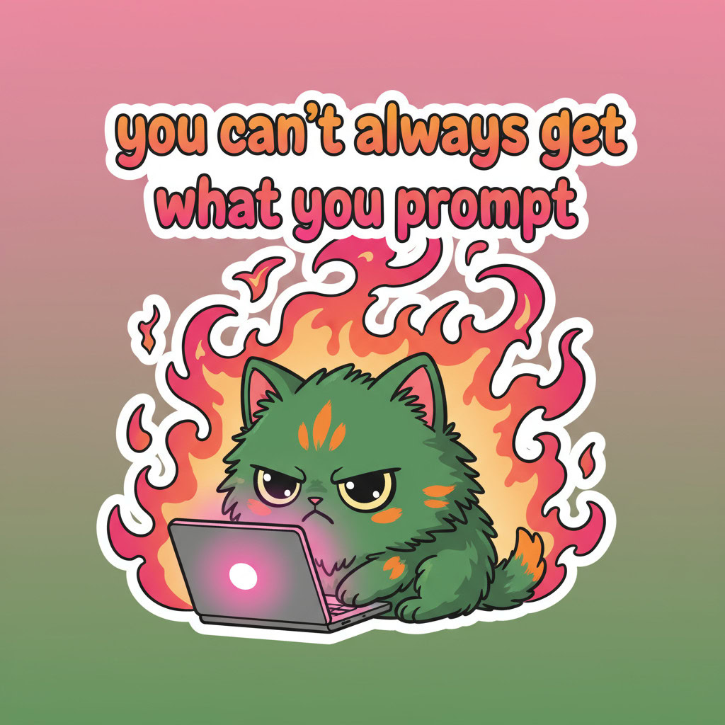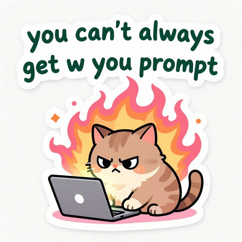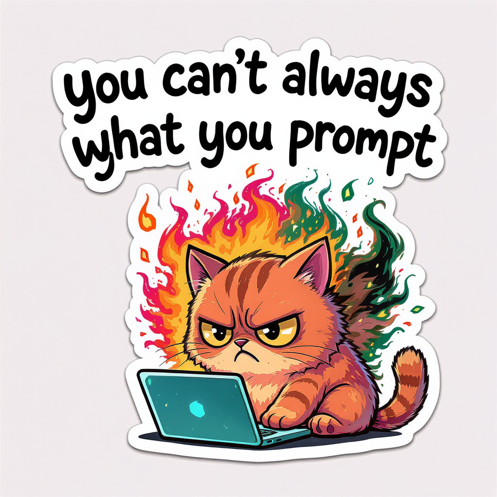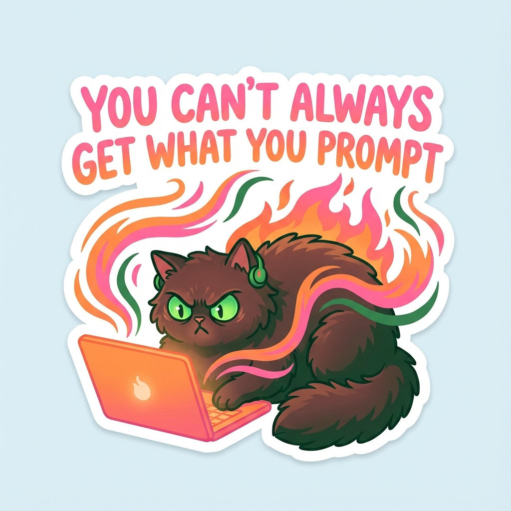 - Kreative Sticker-Illustration, bewertet nach Promptgenauigkeit, Textkorrektheit, kreativer Umsetzung, Farbigkeit und Klarheit der Sticker-Optik, zusätzlichen Bemerkungen und einer Gesamtbewertung.