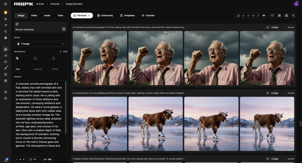 Wichtig zur Einordnung: Natürlich gibt es neben Freepik noch andere Plattformen mit ähnlichem Ansatz – etwa Canva, Adobe Stock oder klassische Stockanbieter mit KI‑Add‑ons. In unserem Setup arbeiten wir aktuell mit Freepik, weil dort viele der getesteten Modelle gebündelt sind und wir mit Workflow und Preis‑Leistungs‑Verhältnis bisher sehr zufrieden sind. Für komplexere, hochgradig individuelle Pipelines setzt Georg als Bild‑ und Video‑KI‑Profi zusätzlich auf ComfyUI, um eigene Nodes, Effekte und Automatisierungen aufzubauen, die über das hinausgehen, was eine Plattform wie Freepik „out of the box“ bietet. Nicht alle Tools aus dem Vergleich stecken jedoch in Freepik: Adobe Firefly läuft weiterhin in der Creative Cloud, und Modelle wie Reve oder Qwen Image Edit kommen über eigene Plattformen bzw. APIs. Wer sich für ein Freepik‑Abo entscheidet, deckt damit also einen großen Teil der getesteten Bild‑KIs bequem über eine Oberfläche ab – muss für einzelne Spezialtools aber weiterhin externe Dienste nutzen.