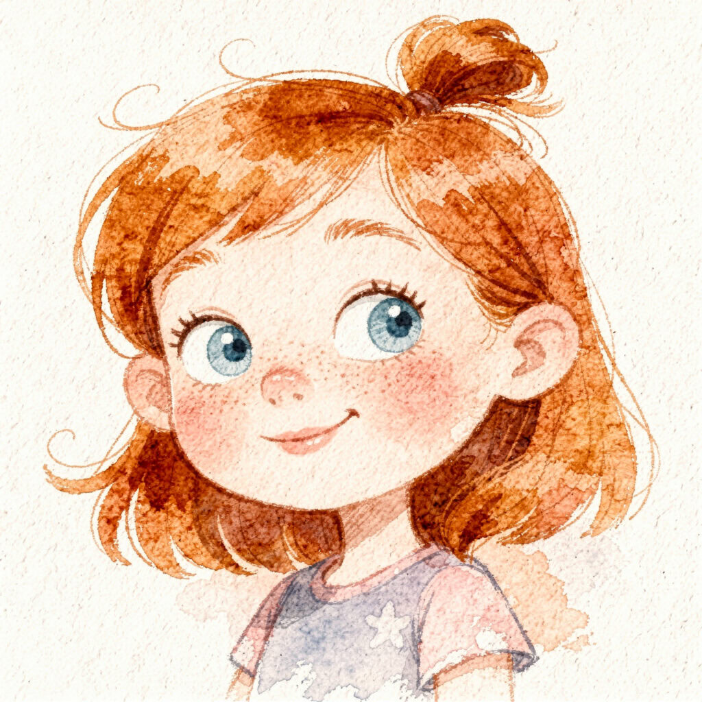 „Soft, whimsical watercolor illustration style with warm pastel tones, delicate and minimal linework, and visible paper texture. Features gentle pigment bleeding, loose transparent brush strokes, and a hand-painted, traditional watercolor appearance. Overall aesthetic is light, charming, and childlike, reminiscent of modern picture-book artwork, with smooth gradients, subtle shading, and an airy, friendly atmosphere.“