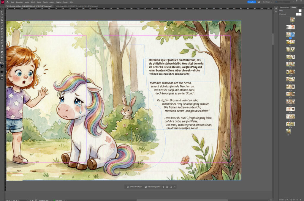 Das diesjährige Buch, „Mathilda und das Keinhorn“, ist nicht nur das schönste bisher, es ist auch das „sauberste“ in der Produktion. Es beweist, dass wir 2026 keine Deep-Tech-Skills mehr brauchen, um konsistente Charaktere zu erzeugen. Wir brauchen „nur“ noch die richtige Strategie, ein gutes Sprachmodell als kreativen Sparringspartner und die richtige Herangehensweise.