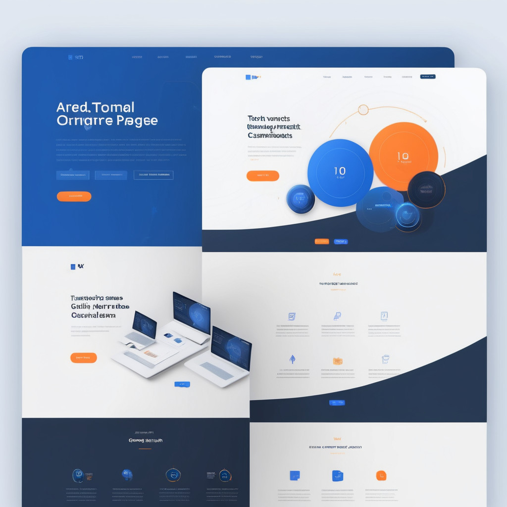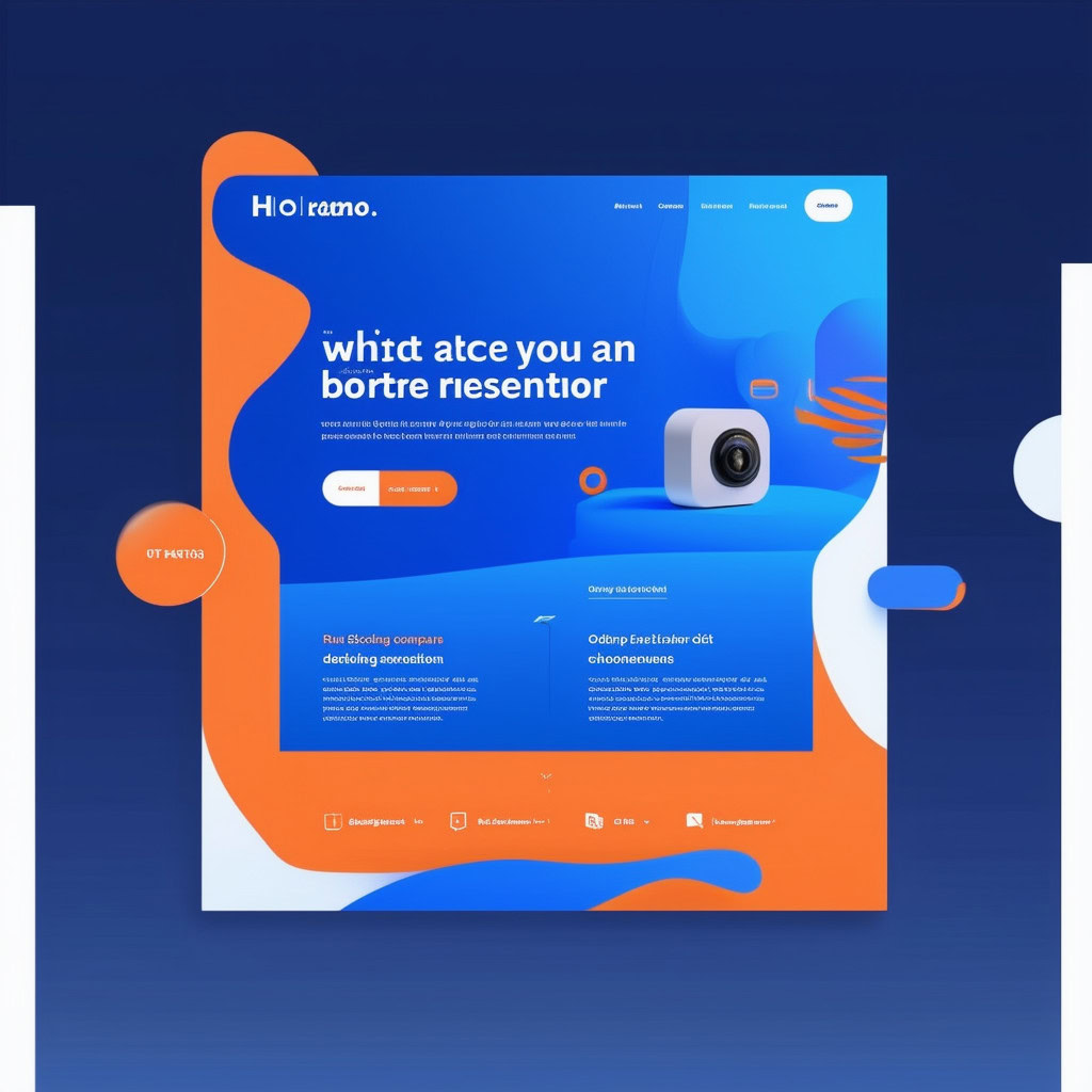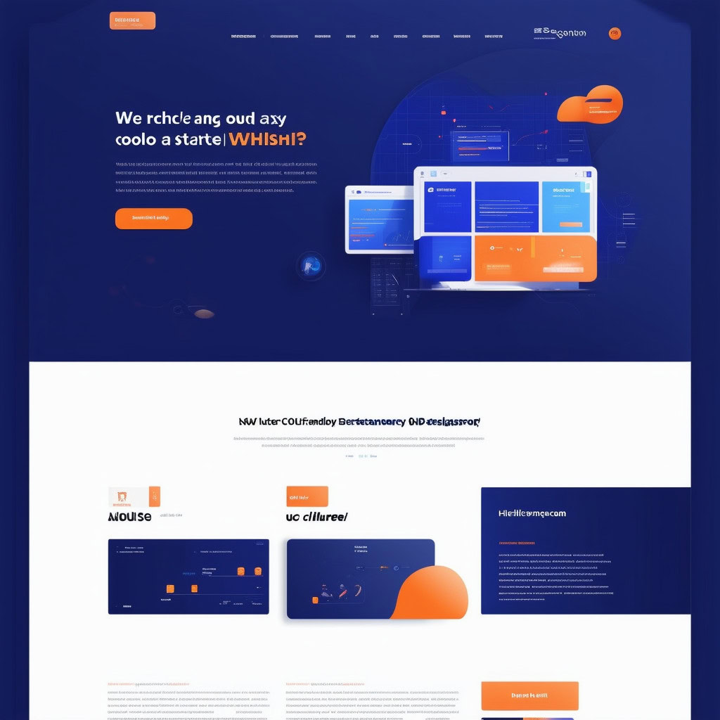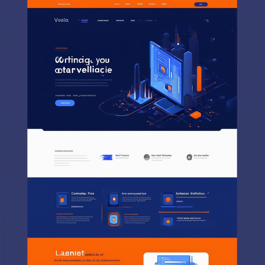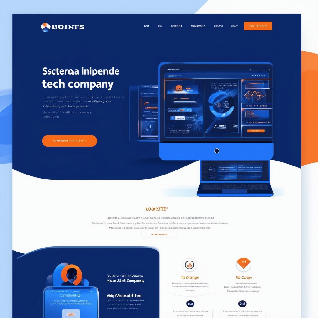 Prompt: a beautiful website landing page for a tech company, modern, minimalistic, blue and orange color scheme, ui, ux, ui/ux
