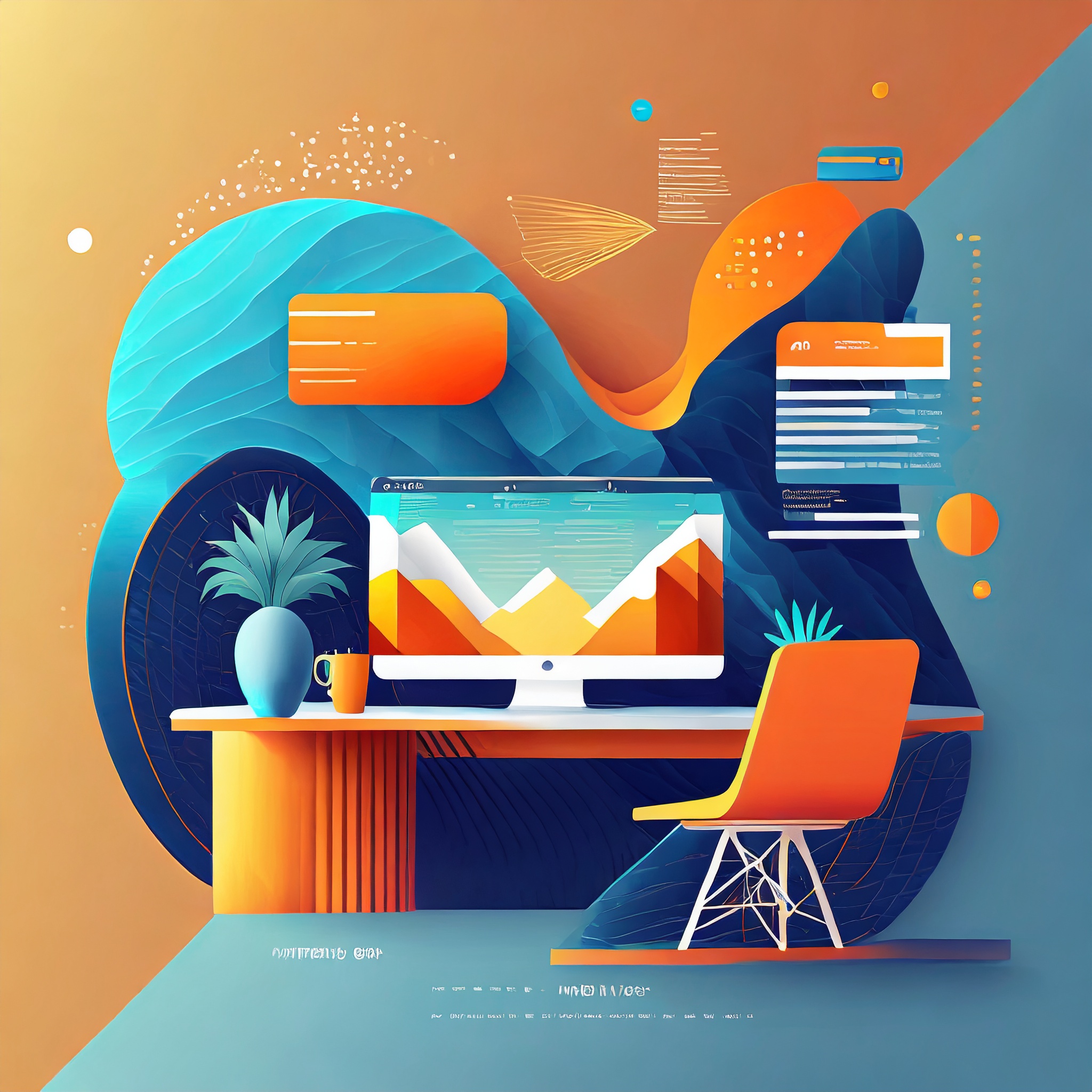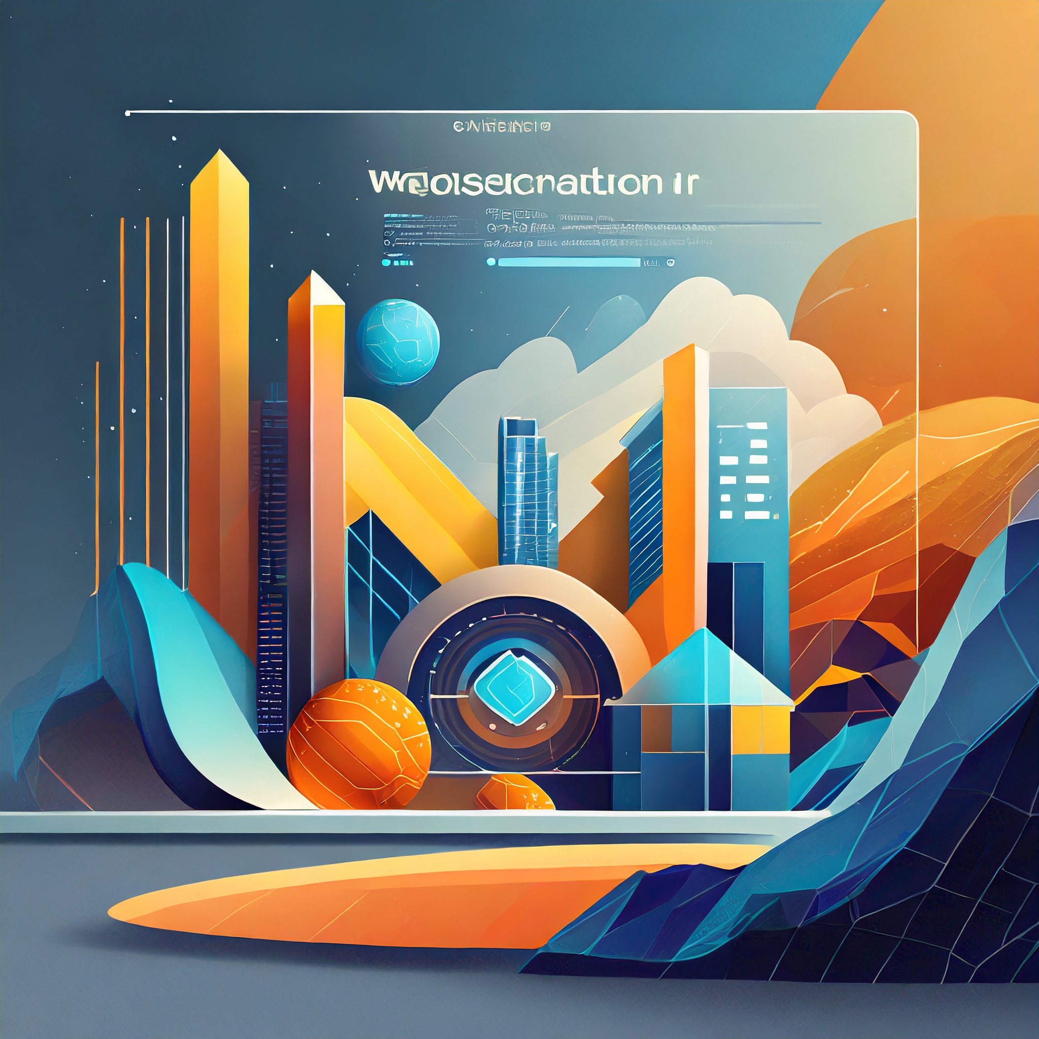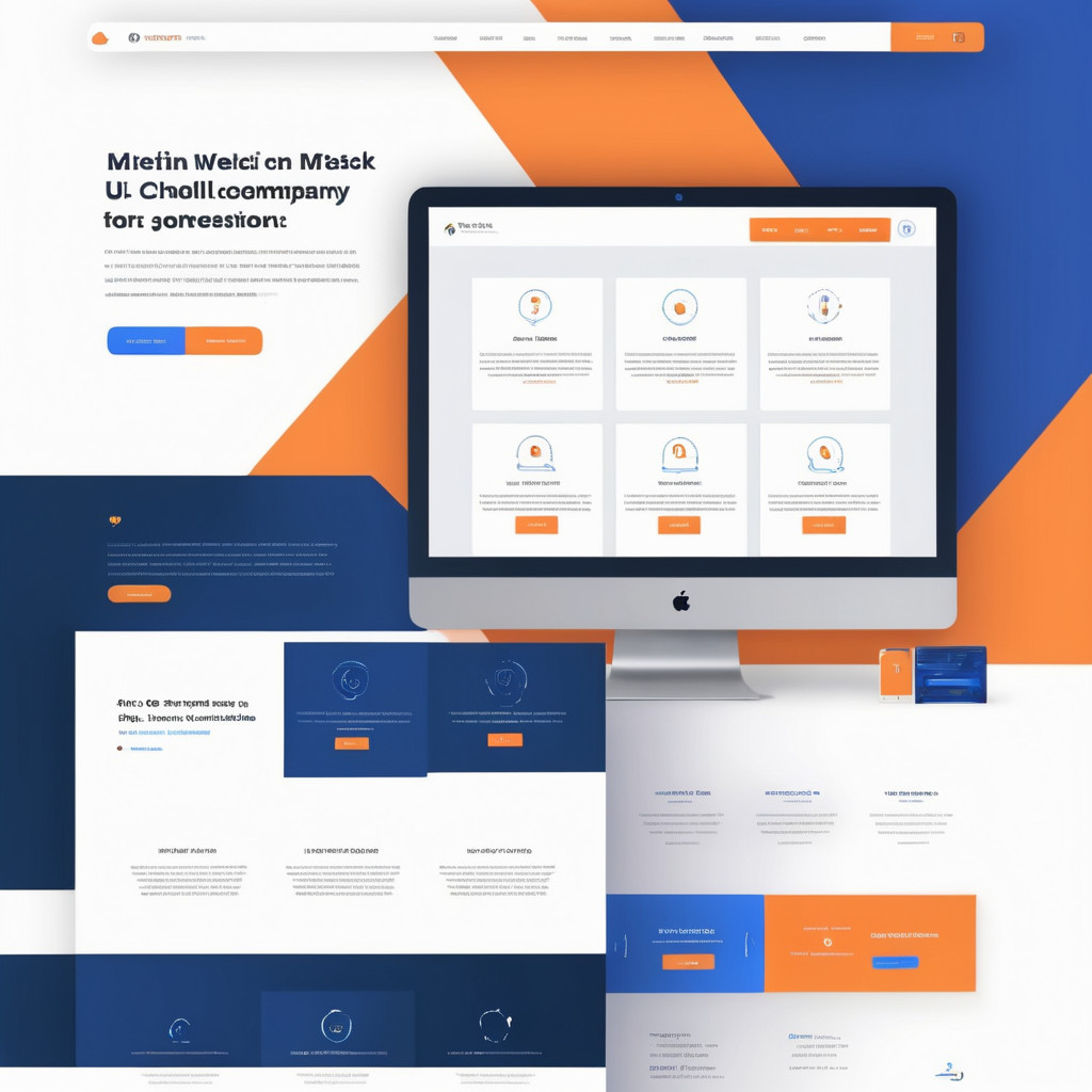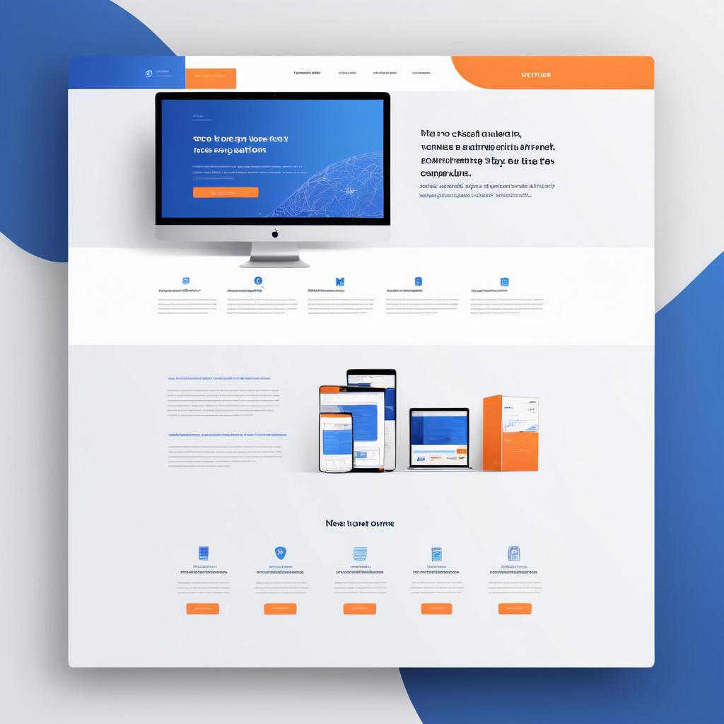 Prompt: a beautiful website landing page for a tech company, modern, minimalistic, blue and orange color scheme, ui, ux, ui/ux
