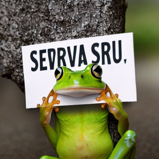 Prompt 4: photo of a frog holding a sign that says „Servus“